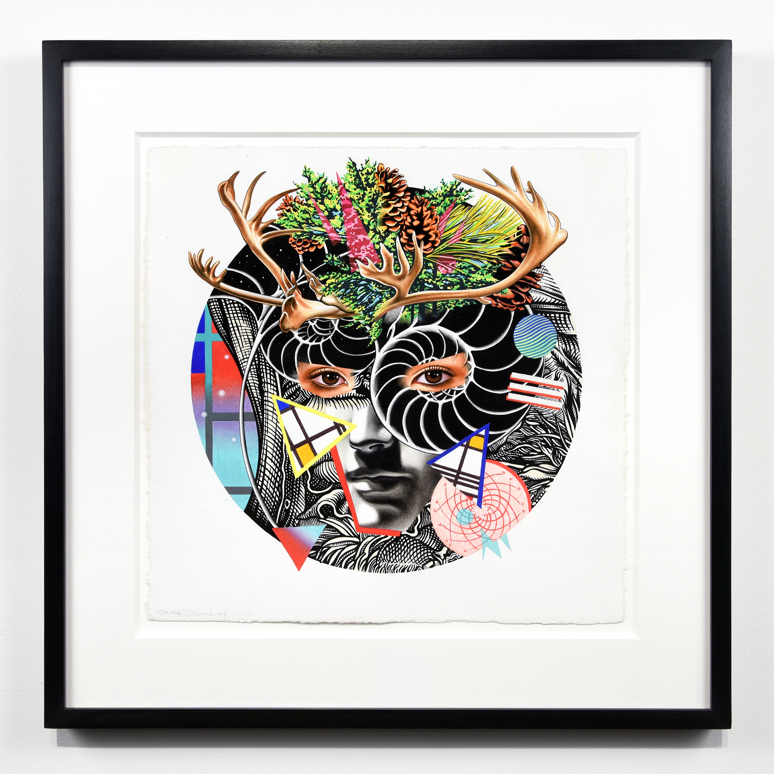 Peter D. Gerakaris, Caribou Mask – Gouache, acrylic, and iridescent pigments on paper. 18 in. x 18 in. each (including museum frame). ©2017