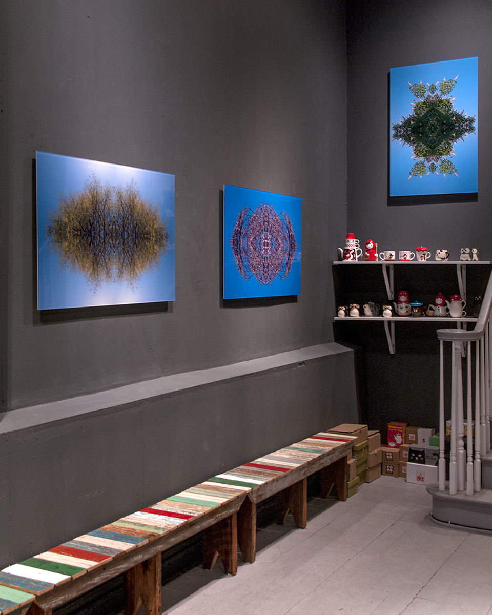 As a multi-disciplined artist, his themes fall into two major ideas. One concerns the spiritual connection to the experiential response to beauty, especially in nature. This is expressed in his bodies of work, Hortus Noster in Urbe (large floral photographic prints), Prayer Rugs (arboreal composite photographs) and Personal Aesthetic Journey (composite images consisting of watercolors and photographs).