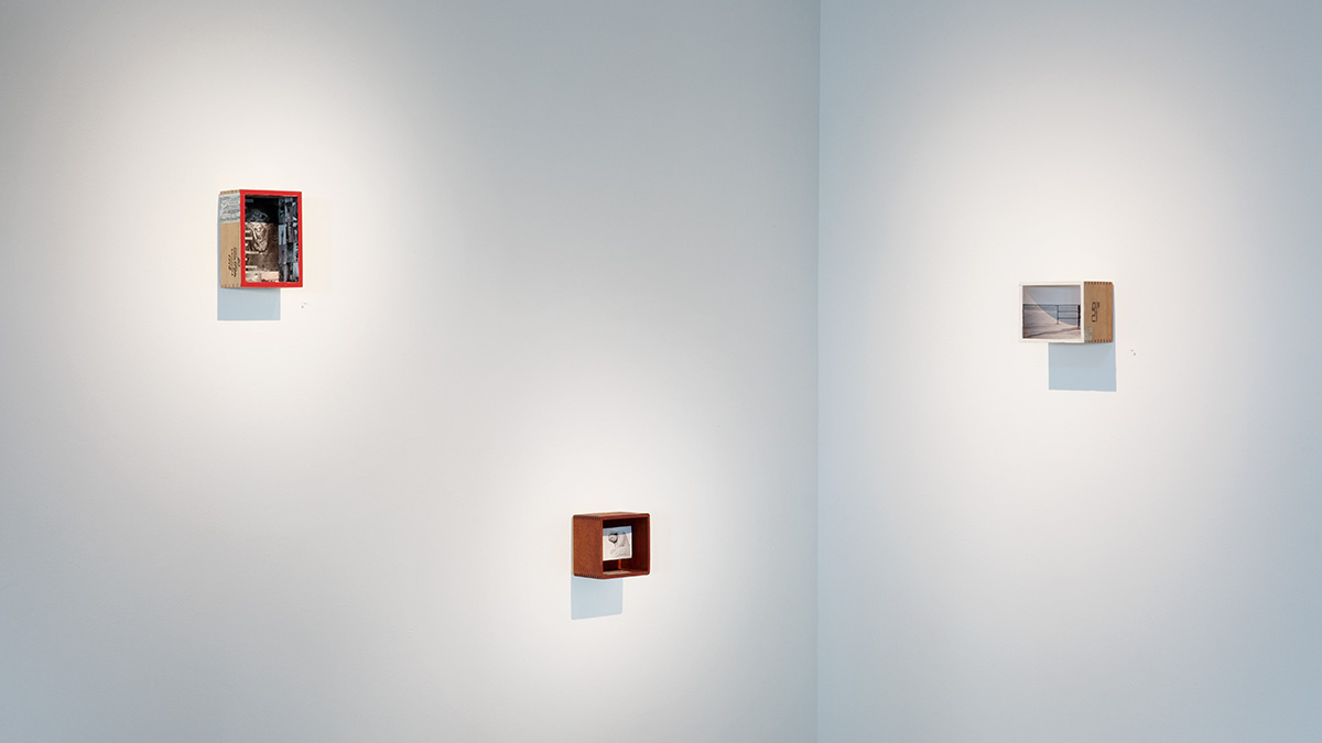 The other idea concerns the exploration of the individual’s role in the community, specifically how we communicate, interact and question our origin. This is explored in the bodies of work Sanctum Boxes (mixed media box constructions), Heart Strings (oil paintings) and Sacred Fabric (large photographs of carefully arranged (‘drawn’) cheesecloth).