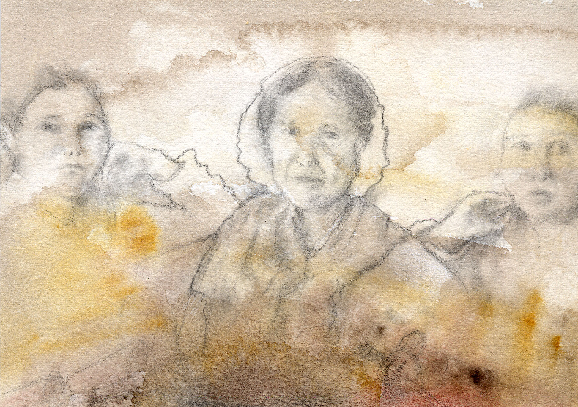 Selections from the series We Are Made to Endure: A Portrait of the Donner Party, 2009–2014, Mixed media on paper, Variable sizes