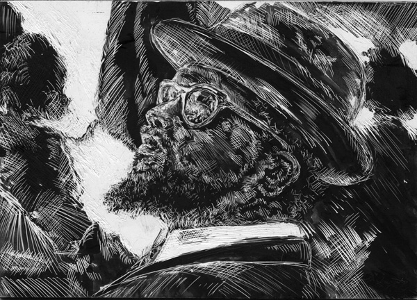 The selected work, Blue-hot — a matchbook-as-canvas portrait portraying Art Blakey — seeks to illuminate the history of one of the key instrumental figures overlooked in music. An American Jazz drummer who worked with Thelonious Monk and Charlie Parker, Blakey formed a collective to incubate young talent—and led a driving, aggressive extension of bebop, with pronounced blues roots, igniting and elevating music’s form.